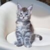 Hello there! I’m Bax, a beautiful male Maine coon kitten, and I’m ready to steal your heart. At just 10 weeks old, I’m already growing into a stunning kitten with my luxurious black smoke coat and mesmerizing yellow eyes. My long, thick fur is soft and silky, and I love grooming it so I always look my best. My bushy tail is just as striking, adding to my elegance and charm. But there’s more to me than just my looks—I’m full of personality! I’m playful, social, and incredibly affectionate. Whether I’m chasing toys that mimic the movements of small animals or snuggling up with you for a cozy nap, I promise to bring so much joy and warmth to your home.