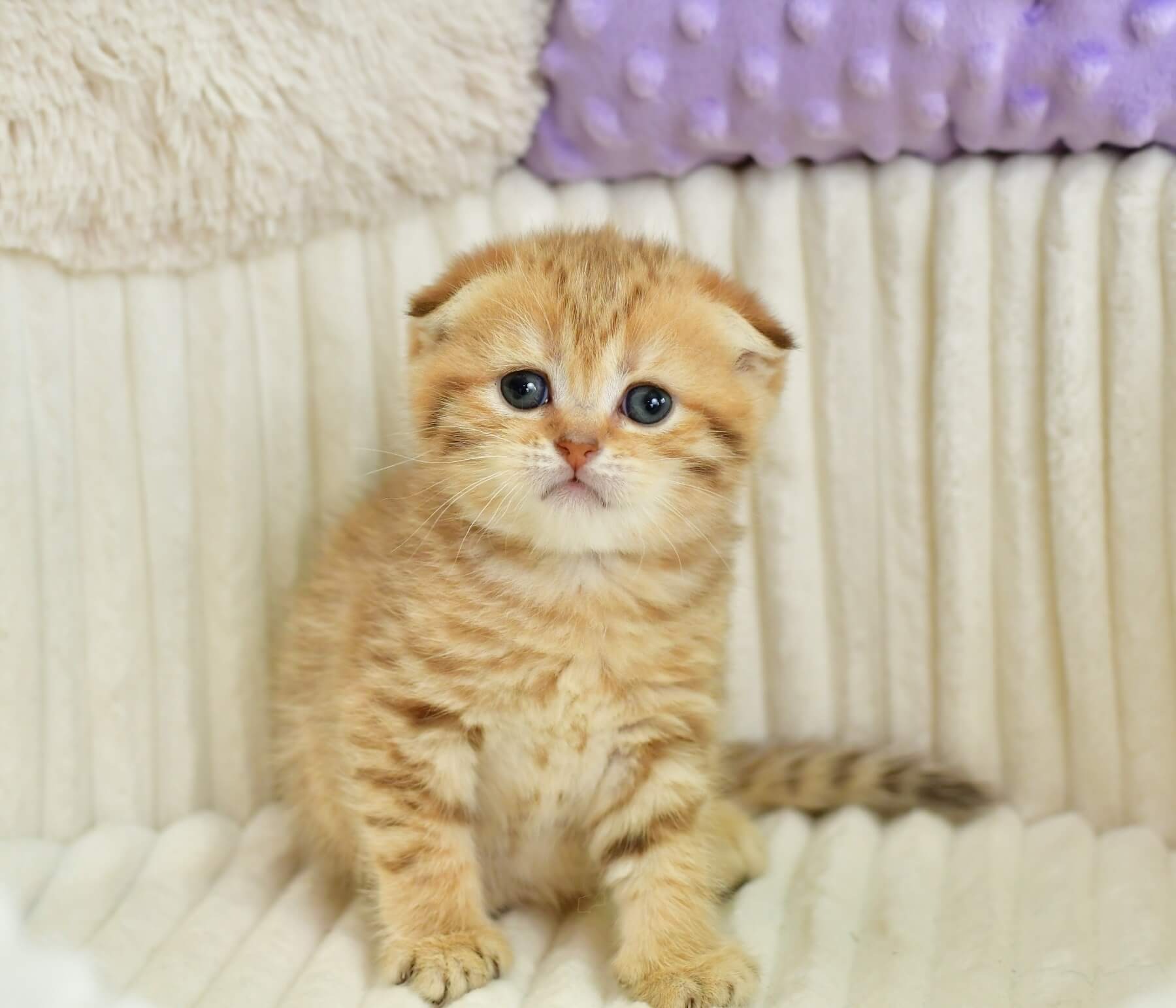 Casper is a lovable Scottish Fold male kitten with a soft, fluffy coat and adorable folded ears. His big, round eyes are full of curiosity and warmth, making him the perfect little companion. Playful yet sweet, Casper enjoys exploring, snuggling, and bringing joy to everyone around him.