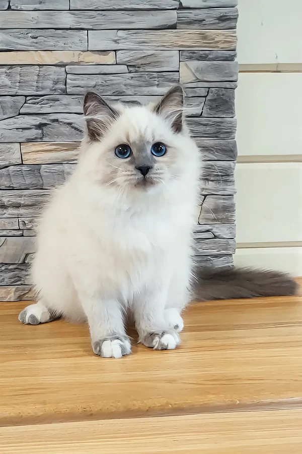Hello there! I’m Chunga, a sweet and playful female Siberian kitten, and I can’t wait to meet you! With my stunning blue point coat and white accents, I’m sure to steal your heart. My blue eyes sparkle with curiosity and warmth, making me as charming as I am beautiful. My luxurious, thick double coat keeps me cozy and warm, while my bushy tail adds an extra touch of elegance to my appearance. But there’s more to me than just looks—I’m affectionate, social, and love spending time with my favorite people. After a fun play session, you’ll often find me curling up next to you, ready for some companionship and warmth.