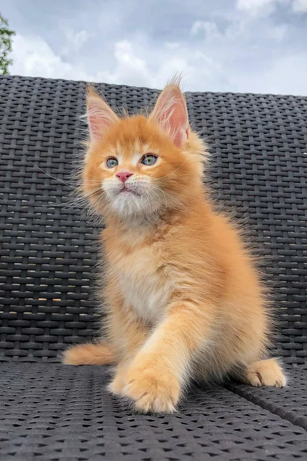 Meet Dallas, a striking male maine coon with a red ticked tabby coat and captivating green eyes. His unique features, including a long tail, perfect breed type, and nice head and profile, come from excellent bloodlines. Expected to weigh 19-22 lbs as an adult, Dallas combines majestic looks with a noble profile, making him a standout. Dallas is gentle, sociable, playful, and tame, ideal for any household.