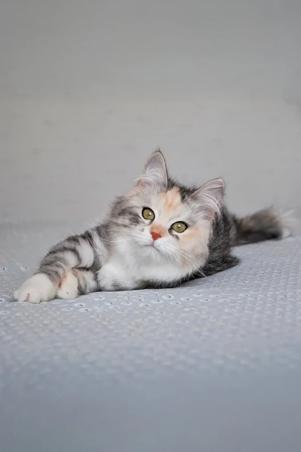Hello, my future favorite person. My name is Eva, and I’m not just a kitten—I’m the gentle little soul you’ve been searching for. I’m a 6 months old female siberian with a rare and dazzling black tortoise smoke spotted tabby coat kissed with white, and my green eyes are full of quiet curiosity and warmth. I’ve been told my colors are truly something special, but what makes me even more unforgettable is the way I melt into your hands, purring softly when you hold me.