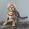 Introducing Jarvis, an enchanting male bengal kitten with a stunning brown spotted tabby coat and striking green eyes. Jarvis is the epitome of what every bengal lover seeks: a kitten with not only a visually impressive appearance but also a vibrant and engaging personality. Jarvis’s unique coat color is a magnificent display of nature’s artistry, highly coveted by enthusiasts for its bold and clear spots against a rich brown background. This extraordinary coat, combined with his rare bloodlines, marks him as a kitten of excellent breed type and luxurious looks.