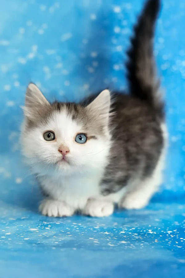 Hi, I’m Junona—your soon-to-be tiny bundle of joy. I’m an 10 weeks old female Munchkin kitten with a striking black smoke spotted tabby coat and the most enchanting eyes you’ll ever see—one a deep green, the other a soft, icy blue. My odd eyes make me truly one-of-a-kind, but it’s my personality that will win your heart. I come from rare and carefully selected bloodlines, raised with love and care under the trusted standards of Purebred Kitties. With my short legs, compact body, and endless curiosity, I’m the perfect little companion for someone who’s ready to fall in love in a big way.
