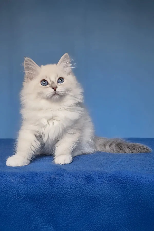 Hello there, my name is Polina—and I’ve been dreaming of the day we’d finally meet. I’m a 10 weeks old female Siberian kitten with a soft blue tabby point coat accented in white, and big, soulful blue eyes that reflect every bit of love I’m ready to give. My fluffy triple coat is one of my most cherished features—thick, plush, and perfect for gentle snuggles on quiet mornings. You might also notice my lynx-tipped ears, a wild little detail that adds just the right touch of elegance to my look.