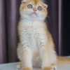 Hello, my name is Ricky, and I am a stunning female scottish fold kitten with a sleek black smoke coat and captivating green eyes. My distinctive folded ears give me an irresistibly charming look, while my round face and big, expressive eyes make it impossible not to fall in love with me. I have a thick, plush coat that adds to my regal appearance, and I carry myself with elegance and grace.