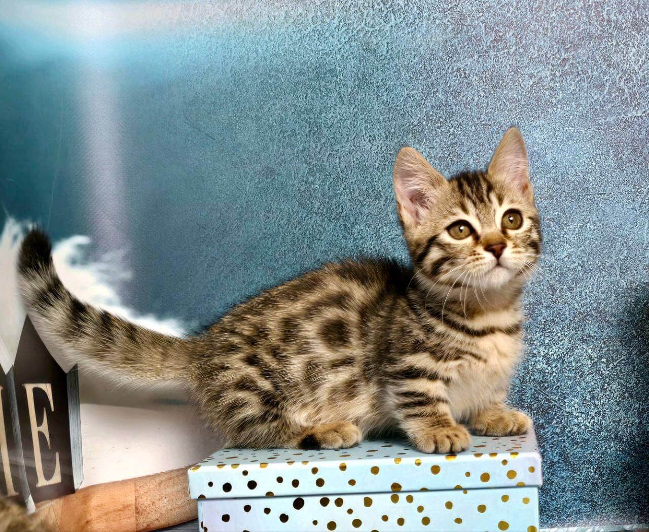 Sienna is a stunning Munchkin female kitten with a soft, fluffy coat and bright, adventurous eyes. Full of energy and curiosity, she loves to explore, climb, and pounce like a fearless queen of the jungle. Despite her playful spirit, Sienna is also incredibly affectionate and enjoys curling up for warm, cozy naps.