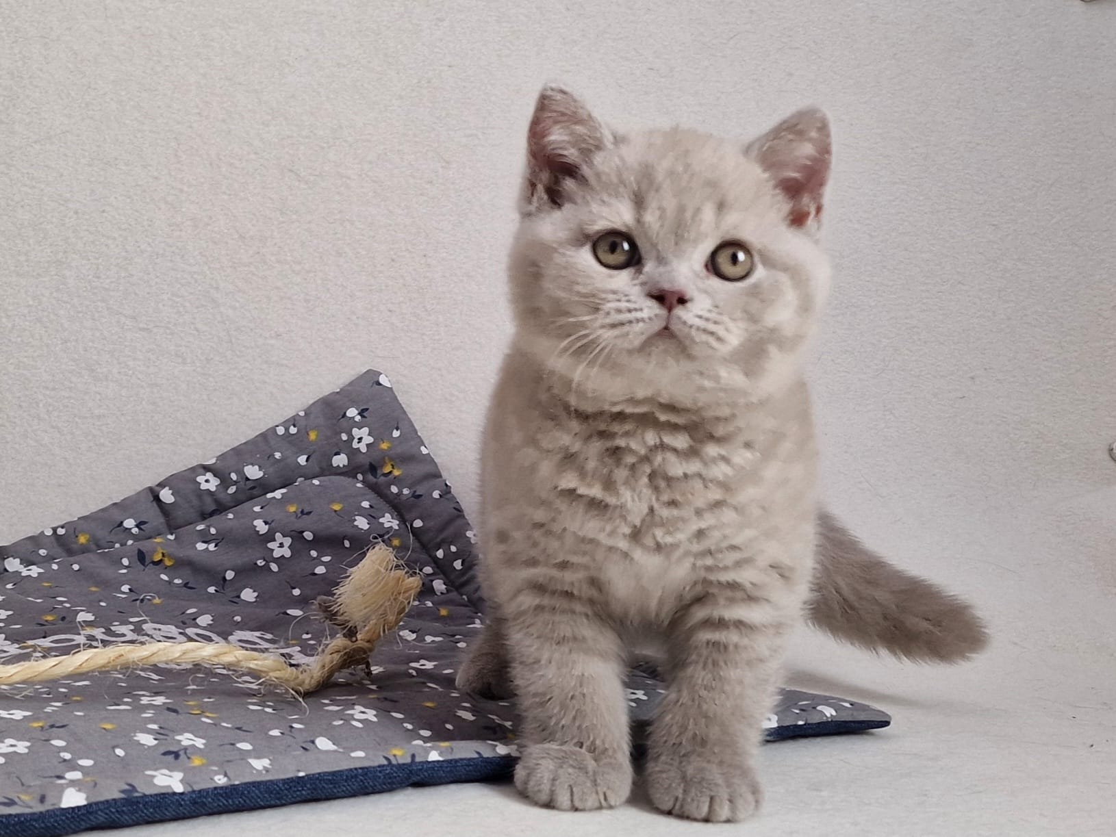 Teddy is a 10-week-old British Shorthair kitten with an irresistibly plush and velvety light beige coat. His round, chubby cheeks and deep blue eyes give her an adorable, teddy-bear-like appearance, making him a true heart-stealer!