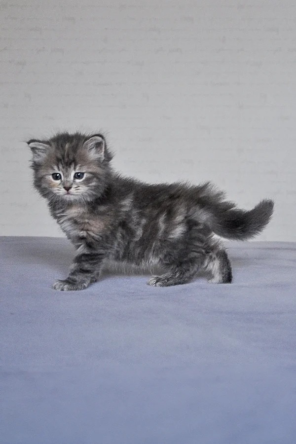 Introducing Yumi, a stunning female Siberian kitten with a captivating blue tortoise blotched tabby coat and striking green eyes. Cherished for her unique and beautiful coat that’s highly sought after, Yumi epitomizes the perfect blend of great bloodlines and exemplary breed type. At full growth, she’s expected to weigh between 8-10 lbs. Yumi’s playful nature shines, making her a delightful addition to any family. Currently thriving on a diet of 1st Choice and meat, Yumi is in peak health and ready to bring joy to her new home.